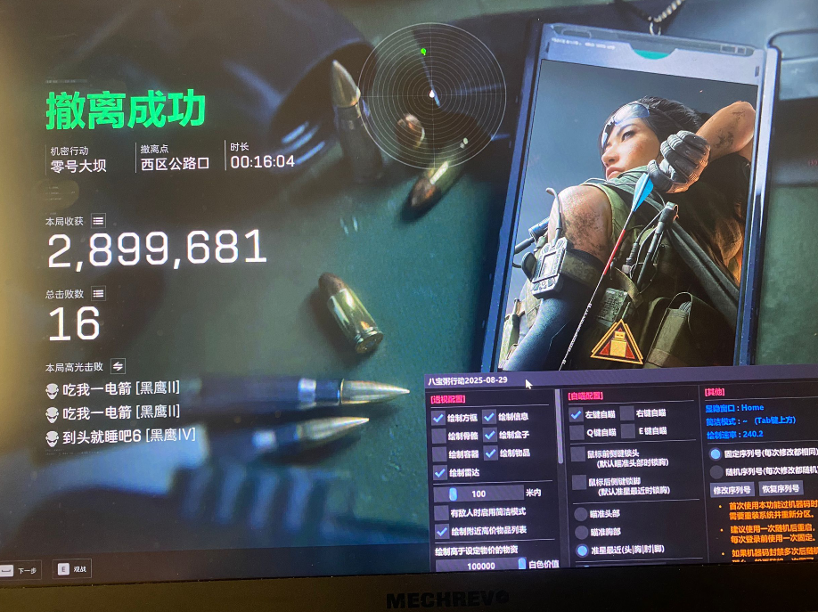 简介:人物透视/自瞄追踪/显示物资/物品价值/贵重物品列表/大地图雷达/血量/盒子/距离/人机显示/过机器码/支持战场模式/下载密码6666